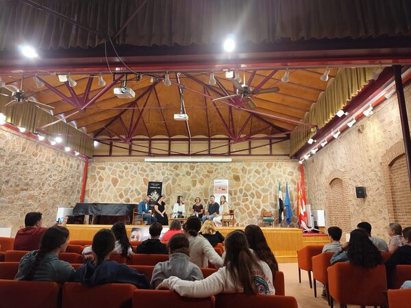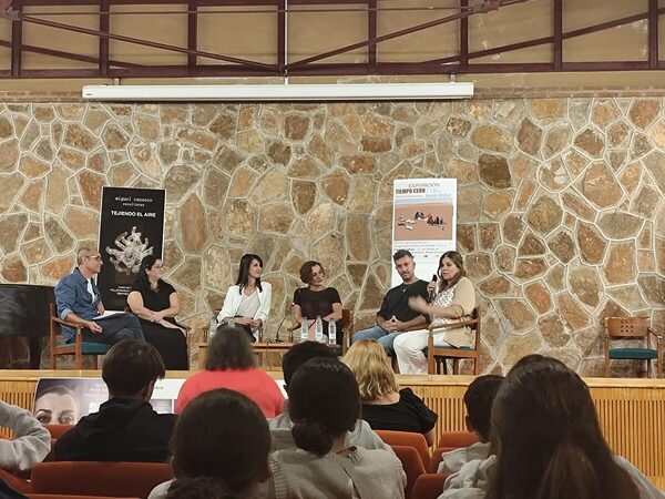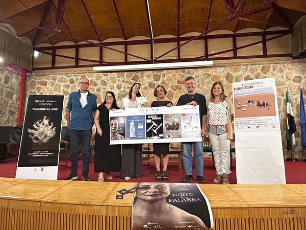 El pasado lunes, dando inicio a las actividades de la materia Relación con el entorno, los profesores Paco Carrillo, Isabel María López y Chelo Bravo, intérprete de lengua de signos, fuimos con los alumnos de 4° de la ESO a la Escuela de Música y Casa de la Cultura. Para empezar, nos recibieron en la Escuela de Música, donde María Isabel López y Verónica Rivera, profesoras de la misma nos explicaron parte de su funcionamiento, aunque prometimos ir otro día para terminar de ver todo bien. A las 11:00, en la Casa de la Cultura, Miriam García, Concejala de Cultura y Fernando Clemente, coordinador de la Casa de la Cultura, nos esperaban para la rueda de prensa, ante diversos medios de comunicación, ya que una de las profesoras de la materia, Isabel María López, representando a la Asociación de Amigos y Amigas del Pueblo Saharaui, hablaba de una exposición de pintura que se inaugura el próximo viernes 3 de octubre y que estará hasta el 16 del mismo mes. Tiempo cero. Ni paz ni guerra, del artista saharaui Aawah Walad, recoge en sus cuadros la vida en los campamentos refugiados, donde se espera, en mitad de la nada, que consigan su libertad como pueblo, mientras transcurren sus días… En la misma rueda de prensa se presentaba otra exposición que se inauguró este pasado viernes: Tejiendo el aire, de Ángel Canseco, y que también visitaremos. Además tenía lugar en el mismo acto la presentación de la programación teatral del cuarto trimestre del año, con la suerte de tener presente a las actrices y actor protagonistas de dichas obras. Todo ello coordinado por Míriam García, que, antes de nada, nos explicó parte de las acciones que se llevan a cabo en el área de Cultura del Ayuntamiento. Nuestros alumnos tuvieron un comportamiento impecable en todo momento, lo que, sin duda, nos anima a que sigan conociendo el entorno tan interesante y variado que tenemos en Villafranca.